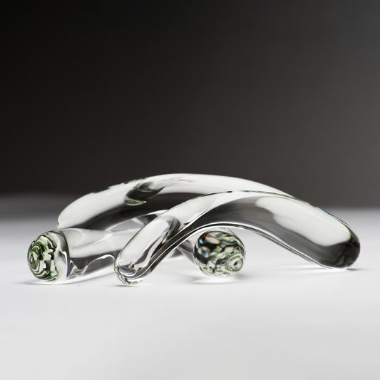 Re-introducing the C-shaped, dual-ended glass dildo, Curve possesses two distinctly sized ends for personalized pleasure. Each piece is meticulously crafted from high-quality borosilicate glass: renowned for its clarity, strength, and safety, and designed to last a lifetime.