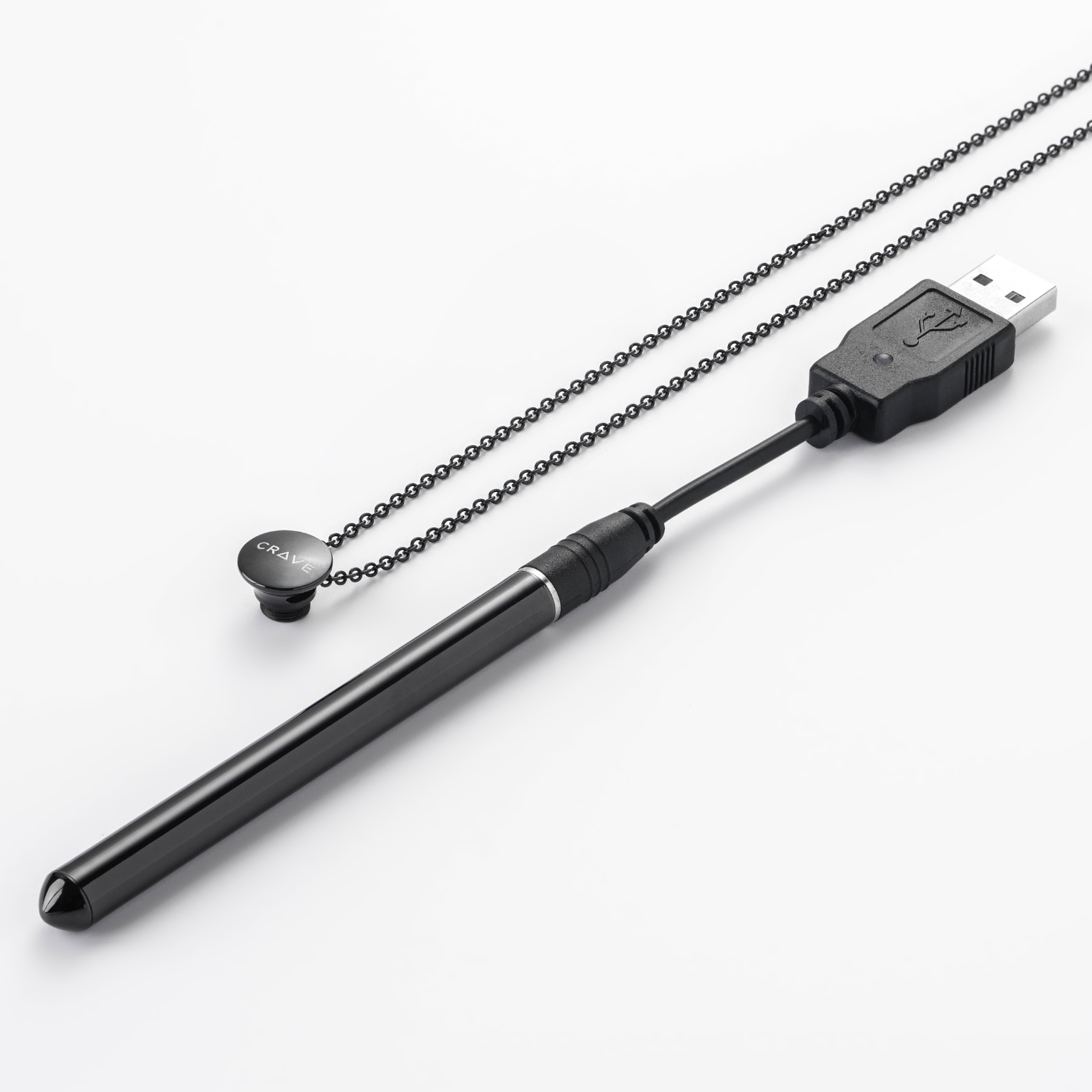 Vesper 2: vibrator and 26" chain, USB-A Charging Cable, and storage pouch