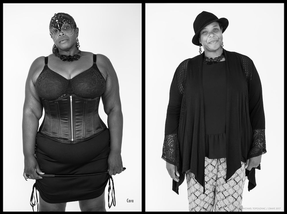 The idea is simple: Two black and white photographs, side by side. One of a person or couple as they presented themselves at the Folsom Street Fair, San Francisco’s legendary celebration of sexual pleasure, and one as they present themselves in their daily lives. Our factory sits on Folsom Street, so we are ideally situated to document our neighbors in both moments.