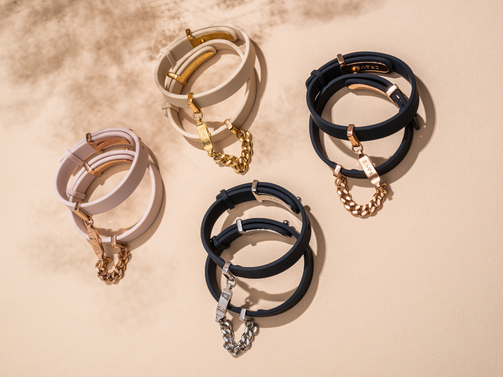 Silicone stacked bracelets designed as a reminder of self-love and light, intimate play.