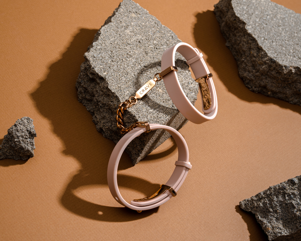 Silicone stacked bracelets designed as a reminder of self-love and light, intimate play.