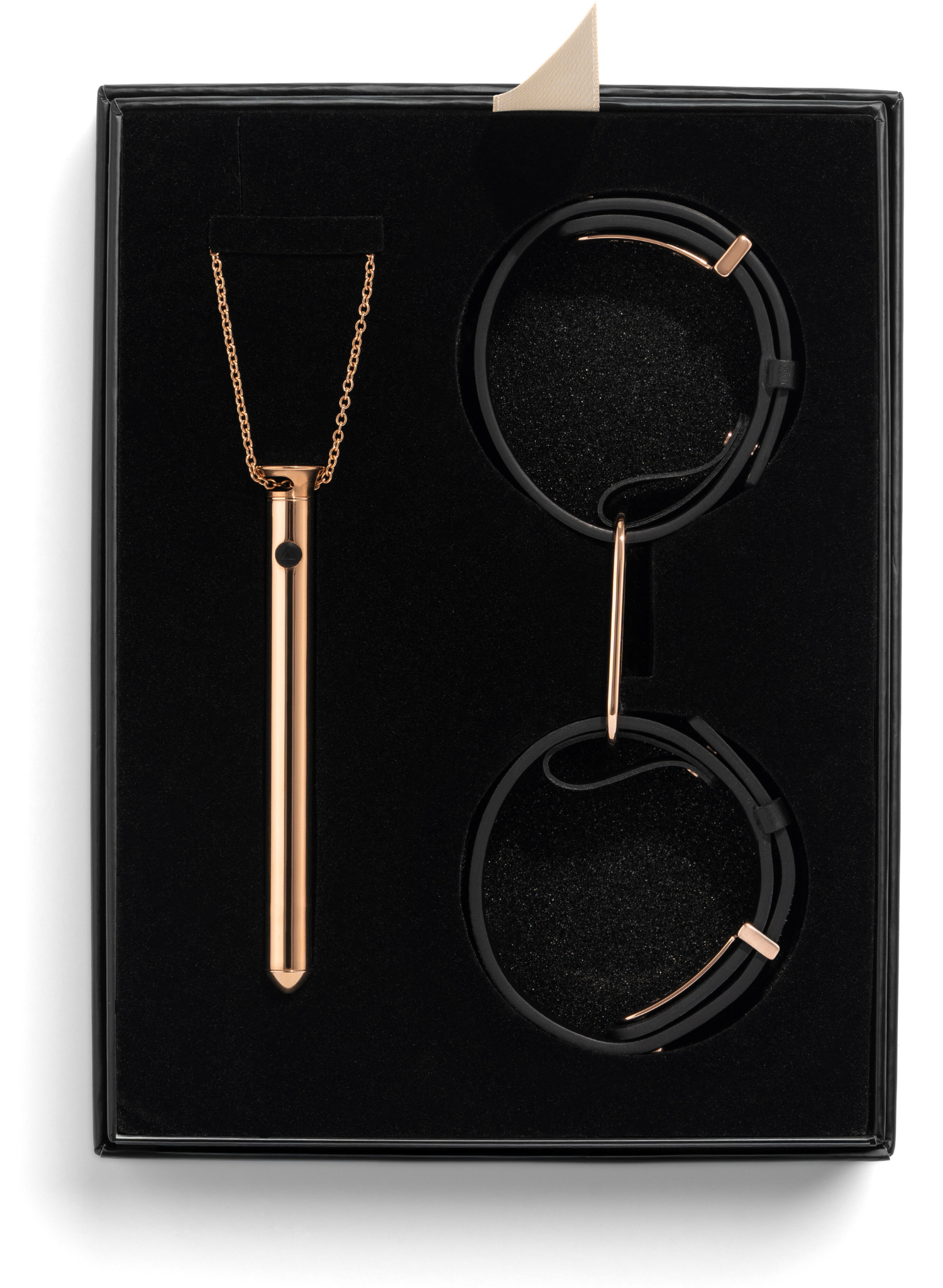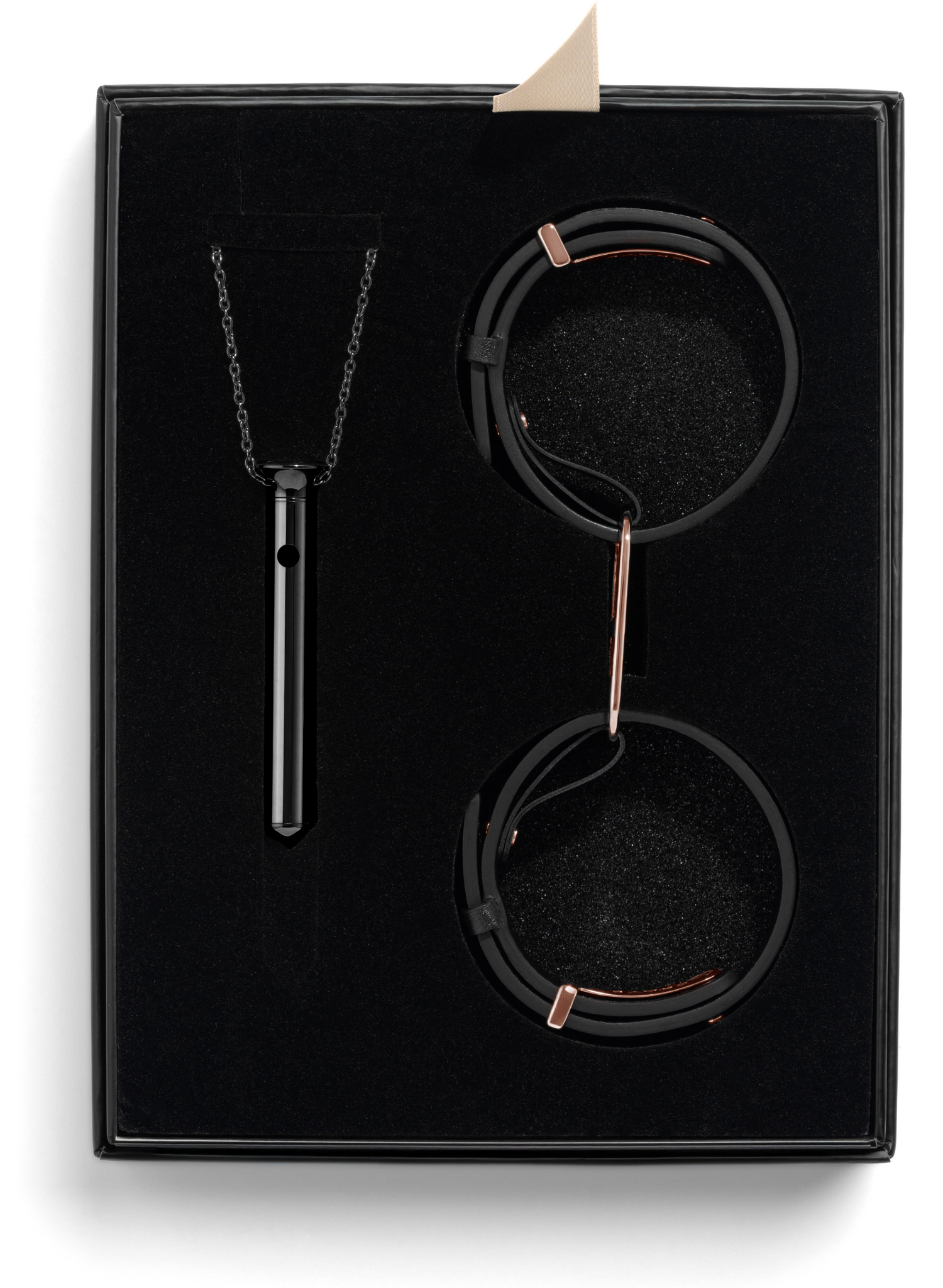 — Rose Gold: ICON Cuffs in black/rose gold with Vesper 2 in rose gold