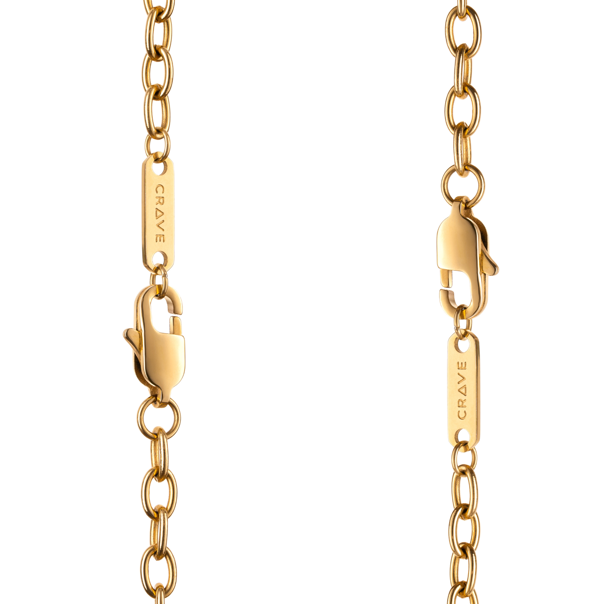 Whether draped solo for minimalist allure or layered for impact, this striking chain is designed to complement any look with ease.